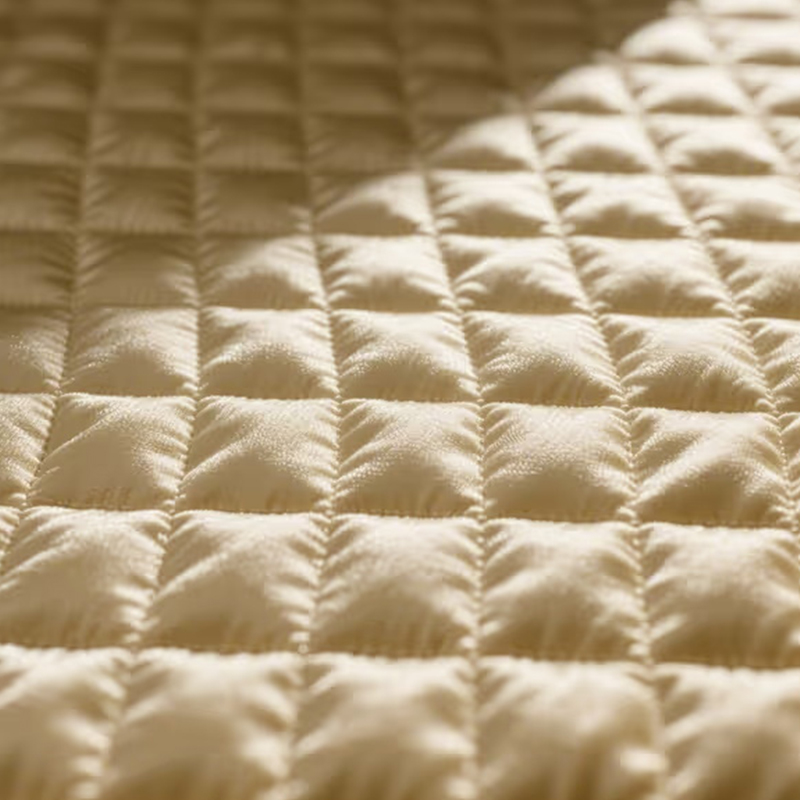 Imitation Brocade Diamond Grid Fabric er et high-end stof vævet gennem udsøgt jacquard håndværk. Overfladen præsenterer fine diamantmønstre med tydelig tredimensionel og lagdelt sans. Dens glans og tekstur gør, at stoffet viser en lavmælt luksus, der bliver et vigtigt valg i moderne modedesign. Stoffets udsøgte jacquarddesign forstærker ikke kun dets visuelle effekt, men bringer også en unik følelse af kunst og modernitet til det samlede produkt. På grund af dets elegante mønstre og stærke tredimensionelle sans, er dette stof meget brugt i modetasker og splejsning af tøjdekorationer.